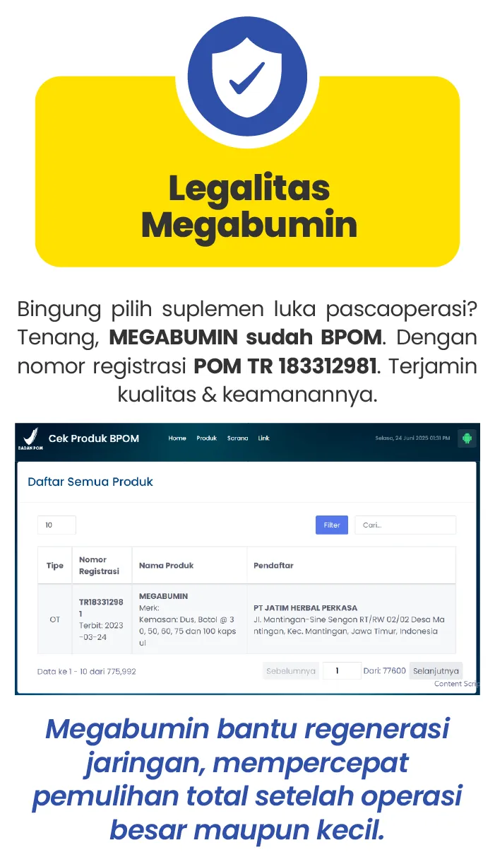 Megabumin aman di konsumsi setiap hari karena sudah berizin resmi. - Formula Berkualitas